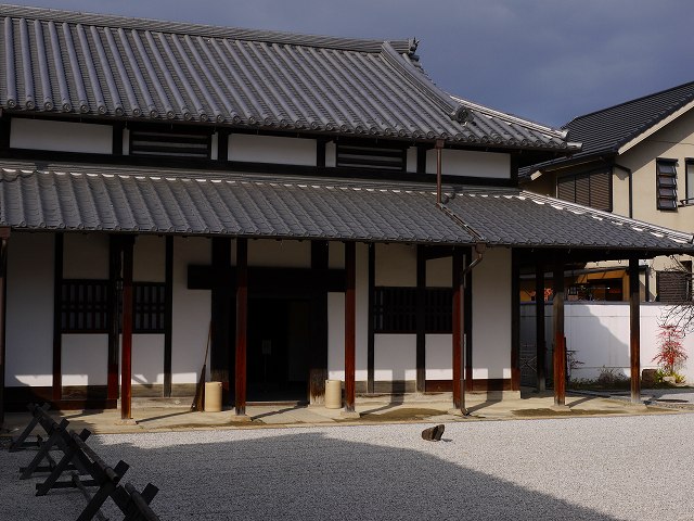 ![]() この地に居を構えたのは、16世紀中頃とされ、棟札には、弘治元年(1555年)に主屋が創建され、 元和2年(1616年)に再建、現在の建物は寛政5年(1793年)の再々建で、 長屋門(大門)は安永5年(1776年)に再建されたと記されています。 東に面して長屋門(大門)が開き、角屋建ての式台付きの玄関を設けた主屋が南に面して建ち、 別建ての書院座敷と部屋部が主屋につながって建っています。 平成13年に家相図等に基づき茶室、待合付き中門、カマヤなどを復元しましたが、 かつては周囲に濠をめぐらし、現在公園になっている北側部分も屋敷地であり、 土蔵が並んでいました。(守口市役所HPより) ※ |