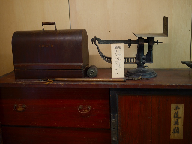![]() ミシンは シンガー製が定番 ※医者もされていたんでしょうか? 秤と薬研 薬研(やげん)は、漢方薬などをつくるとき薬効を持つ薬種 (草・根・木あるいは動・鉱物質)を細粉にひくのに用いる器具。 「くすりおろし」ともいう。石製のほか、鉄製、木製、陶製がある。 かつては石製のものが多かったが、今日では金属製のものが多い。 なお、小舟部分の断面はV字形となっているところから、 城の防御施設において、断面U字形の空堀を「箱堀」などというのに対し、 断面V字形の堀を「薬研堀」と称した。 (Wikipediaより) |