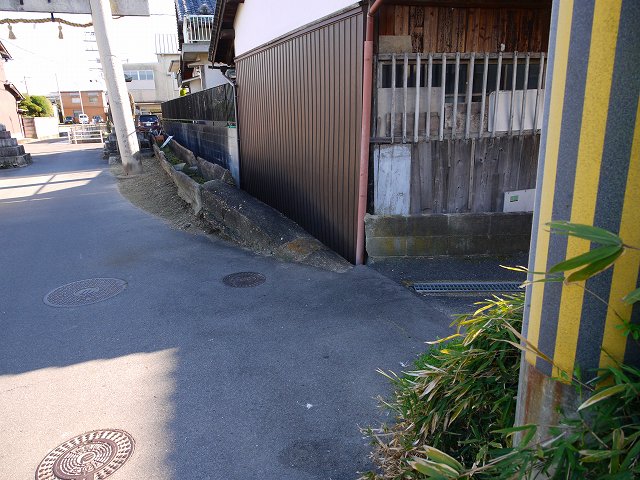 ![]() 見返って〜 住宅地との間に側溝水路 ※家内安全 富社氏子 |