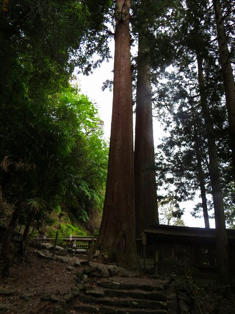 樹齢800年程の杉の大木が相い対いするよう真直に聳え立っております。
