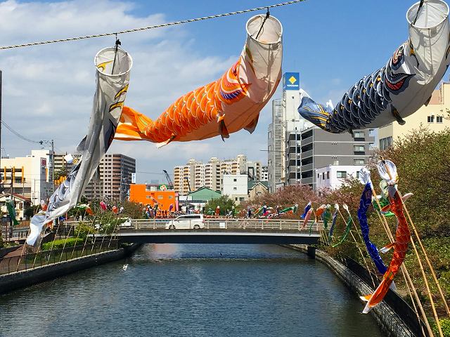![]() 環濠に鯉幟が泳ぎます。 ※ |