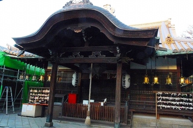 ![]() 本殿舎 一間社隅木入春日造、桧皮葺、桁行1.6メートル、 梁間1.8メートルの小型の本殿です。 春日造ですが前面に隅木<すみぎ>を入れ、正面側に縁高欄をめぐらし、 前面に九段の木階をつけています。 (大和郡山市HPより) ※拝殿舎裏に鬼瓦 |