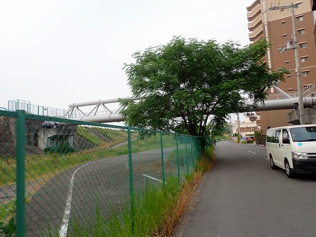 ![]() 長柄運河脇を~ 長柄運河(ながらうんが)は1897年(明治30年)から1910年(明治43年)の 新淀川の開削に伴い新淀川左岸に造られた運河である。 新淀川の開削に当たっては旧中津川の流路の一部を利用し現在の大阪市都島区の毛馬から 此花区の伝法に至る一直線の放水路が造られた。 このときに土砂の運搬と旧中津川を水源としていた正蓮寺川、六軒家川への流水、 工業用水の供給のために新淀川に沿って長柄運河が設置された。 その後、正蓮寺川の治水事業に伴い1967年(昭和42年)に埋め立てられた。 現在でも河道が草の生い茂る窪地になって残っており、運河を越えていた橋も一部が残されている。 (Wikipediaより) ※通行止めですと… |