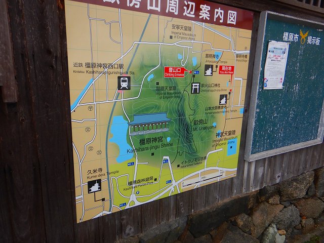 ![]() 畝傍山案内図 ※弘法大師 杖突の井 |